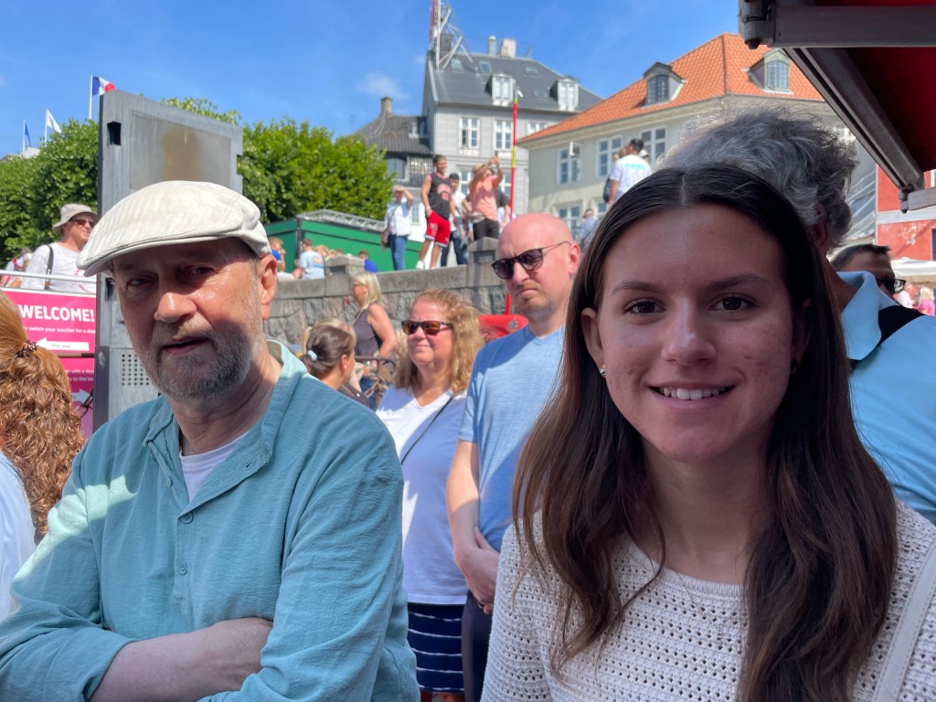 Mitt barnbarn Ebba och min lillebror Rolf vid hamnen iKöpenhamn.