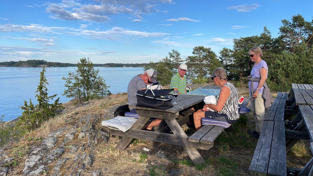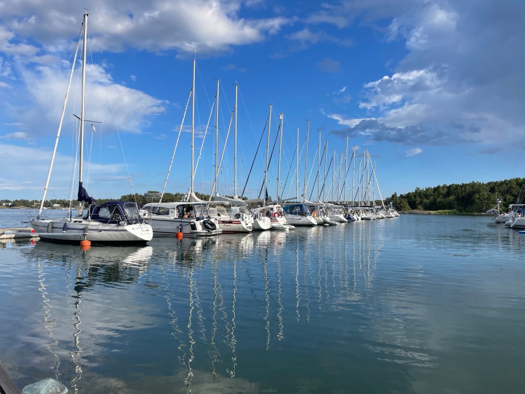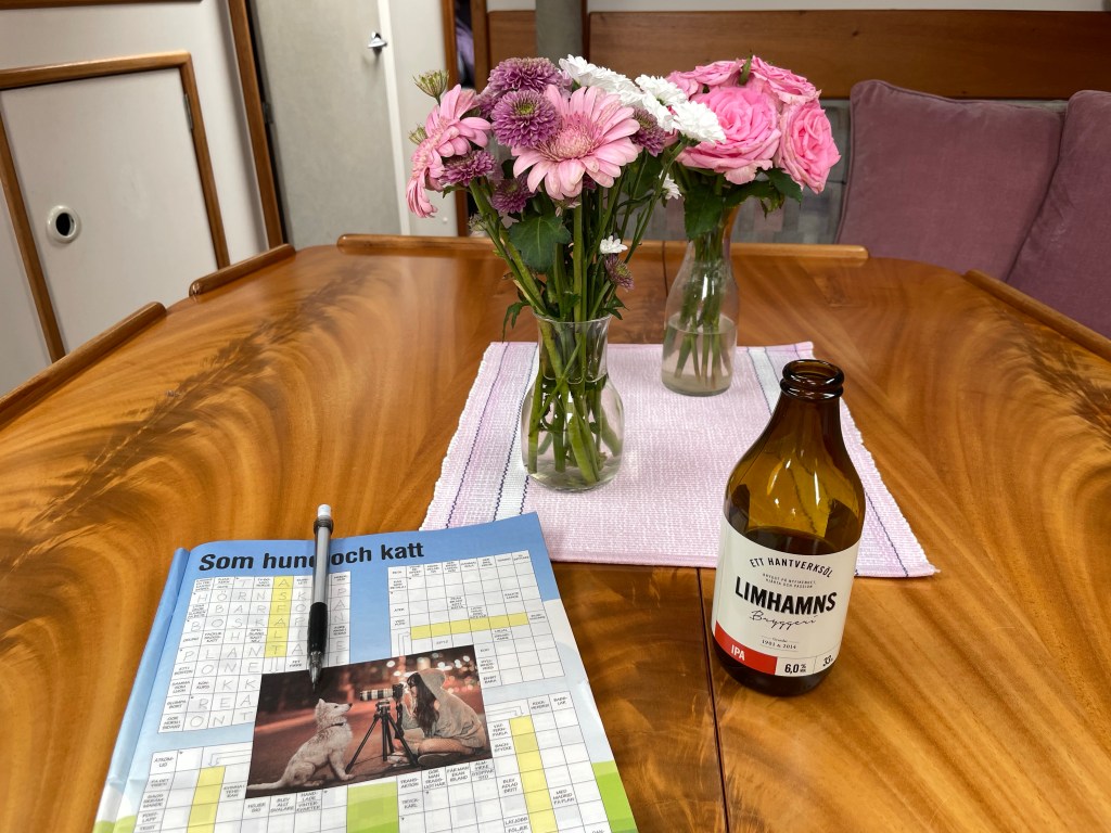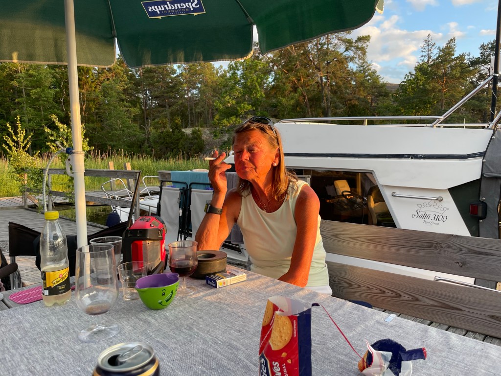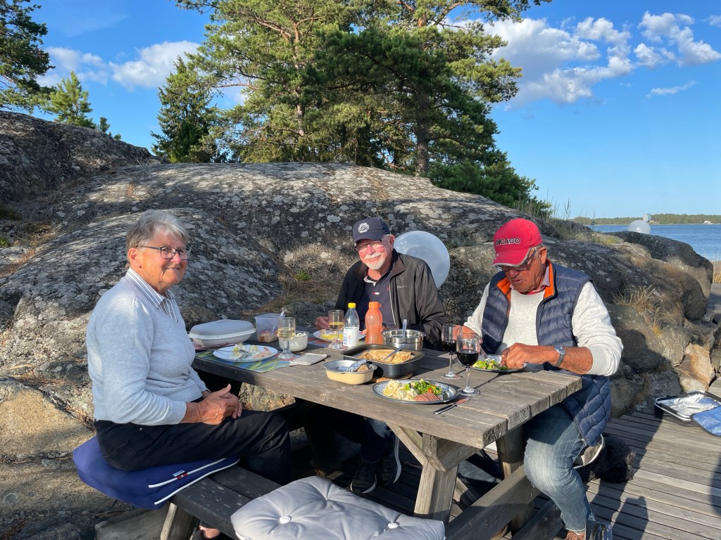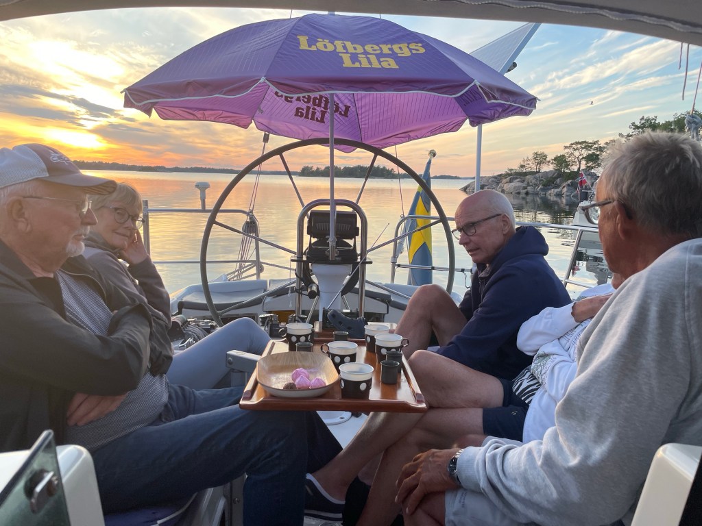 Idag, 12 juni, skriver jag detta årets första blogginlägg trots att vi redan varit ute med båten flera gånger. Dock inte lika frekvent som vanligt. Detta beror på inbokade läkarbehandlingar, min 75-årsdag, äldsta barnbarnets studentexamen – samt att jag har svårt att avstå från tjejträffar, soppträffar, bubbelträffar etc…..😂