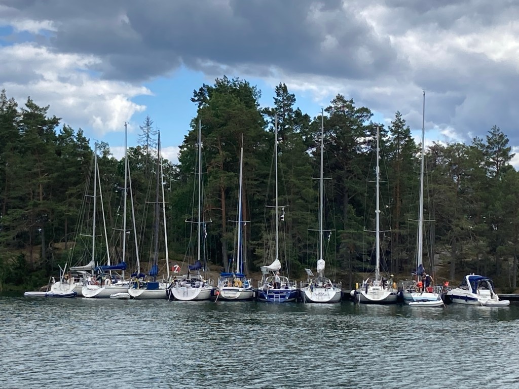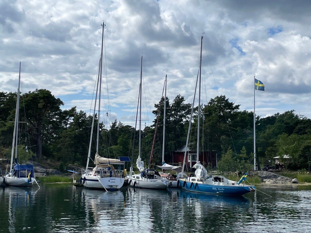 Igår lämnade vi bryggan i Torpa, Södertälje, och startade årets semestersegling. Första anhalt var Järnas Brunskär som vi sedan många år betraktar som helg-hemma! Det har blåst rejält de senaste dagarna så vi valde att motorisera ut med ett litet stopp för tankning i Skanssundet. Våra vänner tog emot oss vid bryggan på Järnas Brunskär och sedan blev det sedvanligt bubbel o babbel i land.