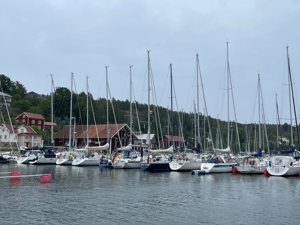 Natten mot söndagen var blåsig, upp emot 14 sekundmeter, och regnig. Eftersom båtarna låg tätt packade så påverkade det inte så mycket trots att vinden kom in lite snett akterifrån.