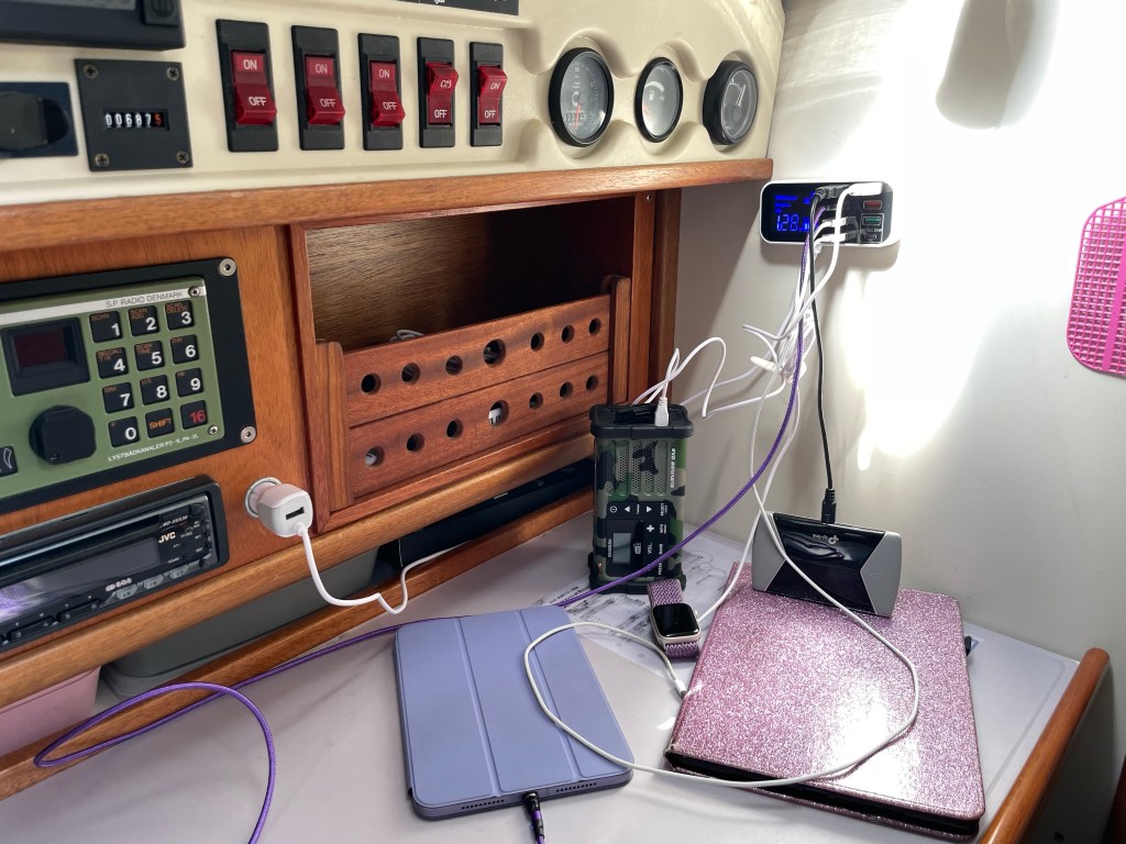 Nu är klockan över 22. Vi har sett Allsång på Skansen i TV och när man är på segelsemester så blir det tidiga kvällar till kojs – så nu är det godnatt!