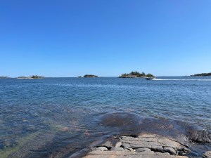 Det blev en dag med regnskurar lite då o då. Vi kunde äta middag iland men plötsligt försvann alla ner i sina båtar! Det ryktades om blåbärspaj men den får vi kanske imorgon…