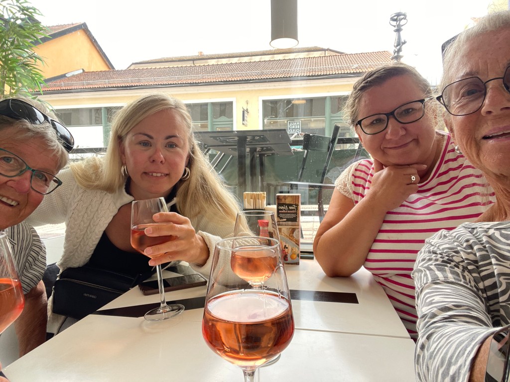Igår fick vi för oss att bjuda hem Barbro o Lennart samt Kerstin o Totte på lite umgänge och hämtmat. Det blev bubbel med tilltugg för oss ”tjejer”. Killarna, som skulle köra bil hem så småningom, drack påskmust…..jodå, det funkar en sommardag i juli! 😂