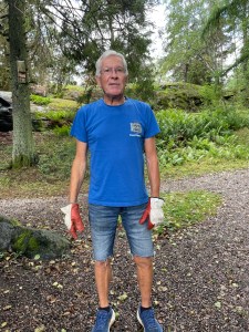 Efter frukosten så ville Olle bli midsommarfin i håret. Frisörsax, kam o sprayflaska m vatten plockades snabbt fram och Olle satte på sig badbyxor för att inte håra ner kläderna – inte skönt när det kliar o sticks….! Jag skred till verket men det var inte lätt när man fångat en tuss som man just skulle kapa en bit och vinden tog tag i tussen och blåste bort den….🥴. Så småningom såg han dock riktigt prydlig ut! Det tyckte även vännerna!
