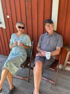 Värdparet, Lena o Anders, tar en välbehövlig kaffepaus.