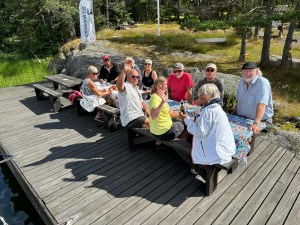 De första som vi glatt uppsökte på bryggan utanför var Brittis o Lasse som numera är ”Vikenbor” sedan 6 år tillbaka. Lasses mamma Sonja (otroliga 92 år) hade bilat ner från Södertälje för att vara med på festligheterna.