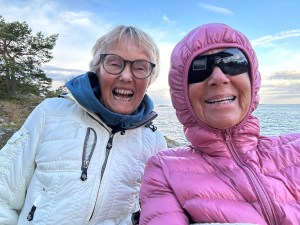 Lena o jag tog en selfie utåt havet innan det blev alltför kallt.